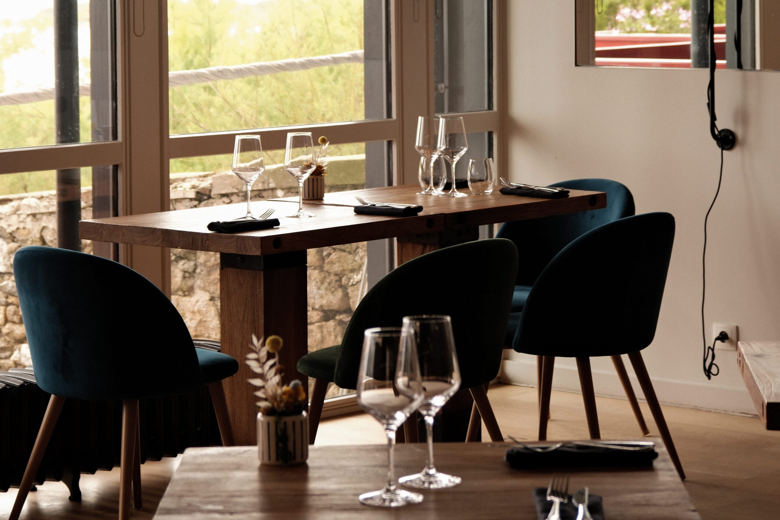 Between land and sea, he plays with contrasts and textures - from salmon gravlax to burnt leeks, from lamb confit to semi-salted cod - to create a lively gastronomy, rooted in the right taste and the right season.